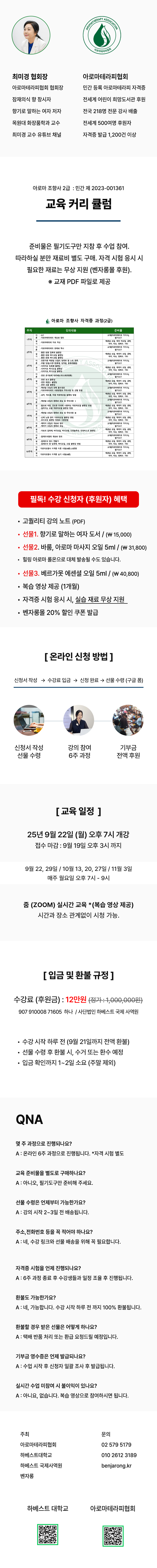 아로마테라피 자격증 과정 16기 모집 공고 = 강사 자격증 취득 = 참가비 후원