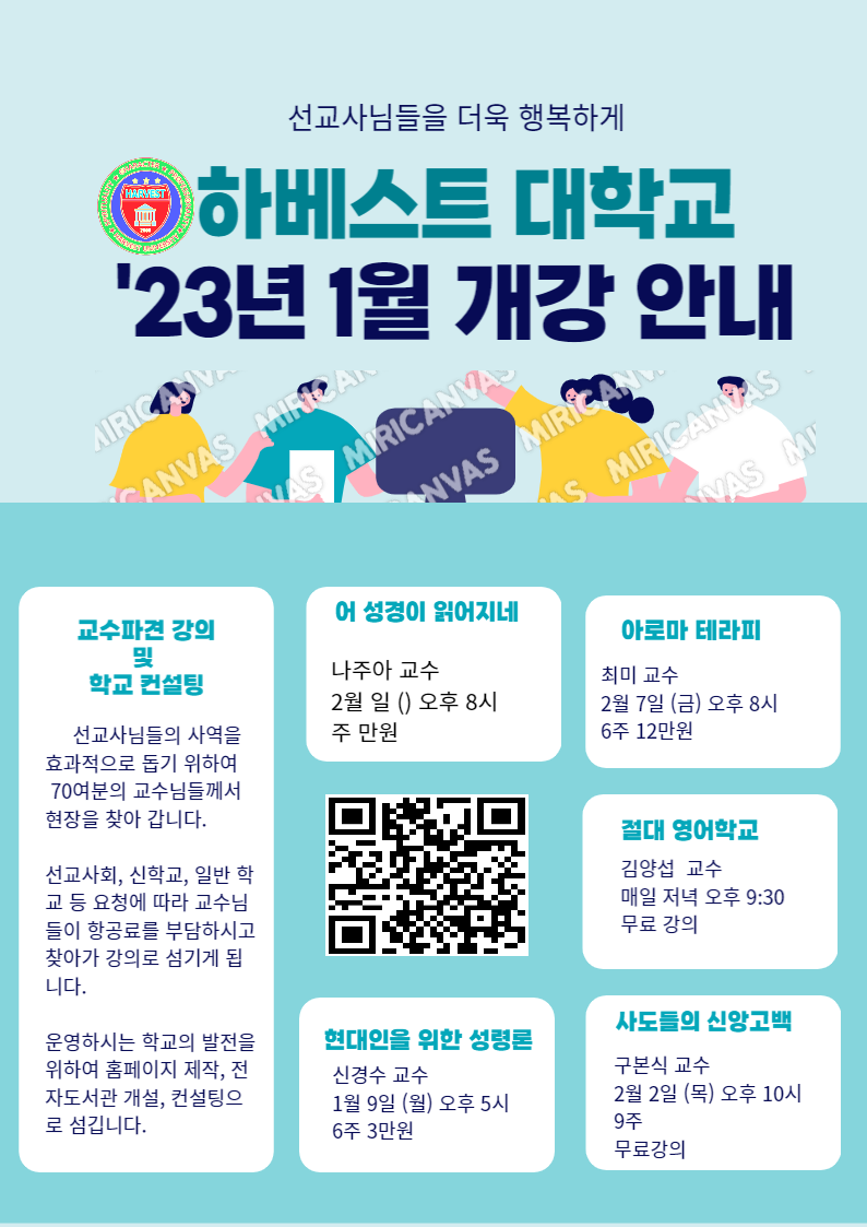 2923년 1월 개강 강의 소개 등록일2023.01.03 조회수1,660 2023년 1월 개강 강의를 소개합니다. 이전글 '23년 2월 개강과목을 소개합니다. 다음글 12월 1월 개강하는 강좌 소개 목록