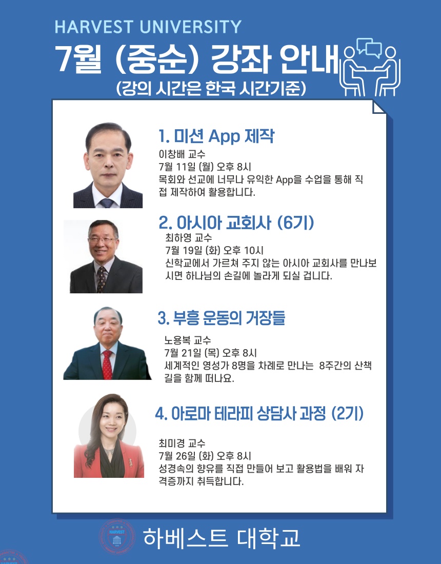 7월 (중순) 하베스트대학교 강좌 안내