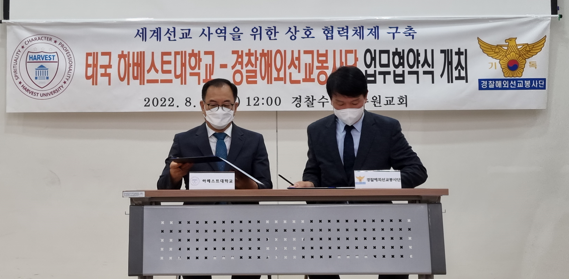 경찰 해외 선교 봉사단과 업무협약식 체결 등록일2022.08.10 조회수1,813 이전글 2022년 10월에 개강하는 강의들입니다. 다음글 선교지 신학교에 하베스트대학교 교수님을 파송합니다. 목록